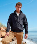 Classic fit Harrington style jacket. Elasticated ribbed knit collar, cuffs and hem. Finishes just beneath the waistline. Full-zip through style. Two side slit pockets. Embroidery access on the lower back and left hand side of chest. Product contains no branded neck label. Removable Kimble or looped garment tags. Inner seam label holds important product information on one label with a second label containing brand information which can be cut-away. Please note old stock may contain a fixed branded label.