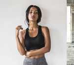 Women's seamless sports bra from sports brand Tombo with removable padded cups and racerback.