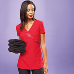The Rose Beauty and Spa tunic from quality workwear brand Premier. Smart and modern styling featuring an elegant self -coloured satin trim across the main body of the tunic to create the impression of a wrap- over style